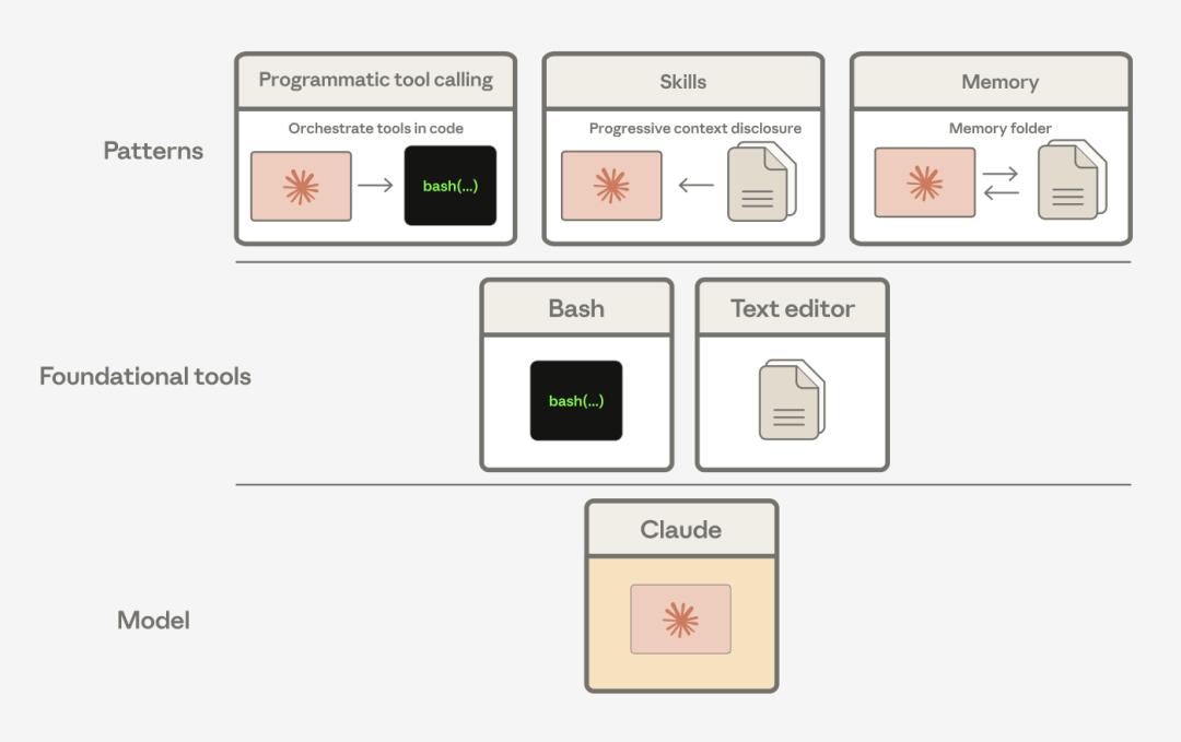 Programmatic tool calling, skills, and memory tools are actually clever combinations of our bash and text editor tools.