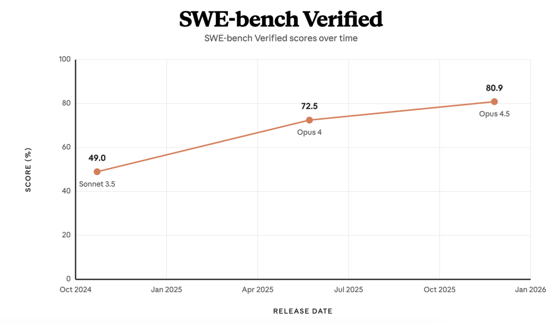 The scores of various Claude model versions on the SWE-bench Verified benchmark visually demonstrate its evolutionary path.