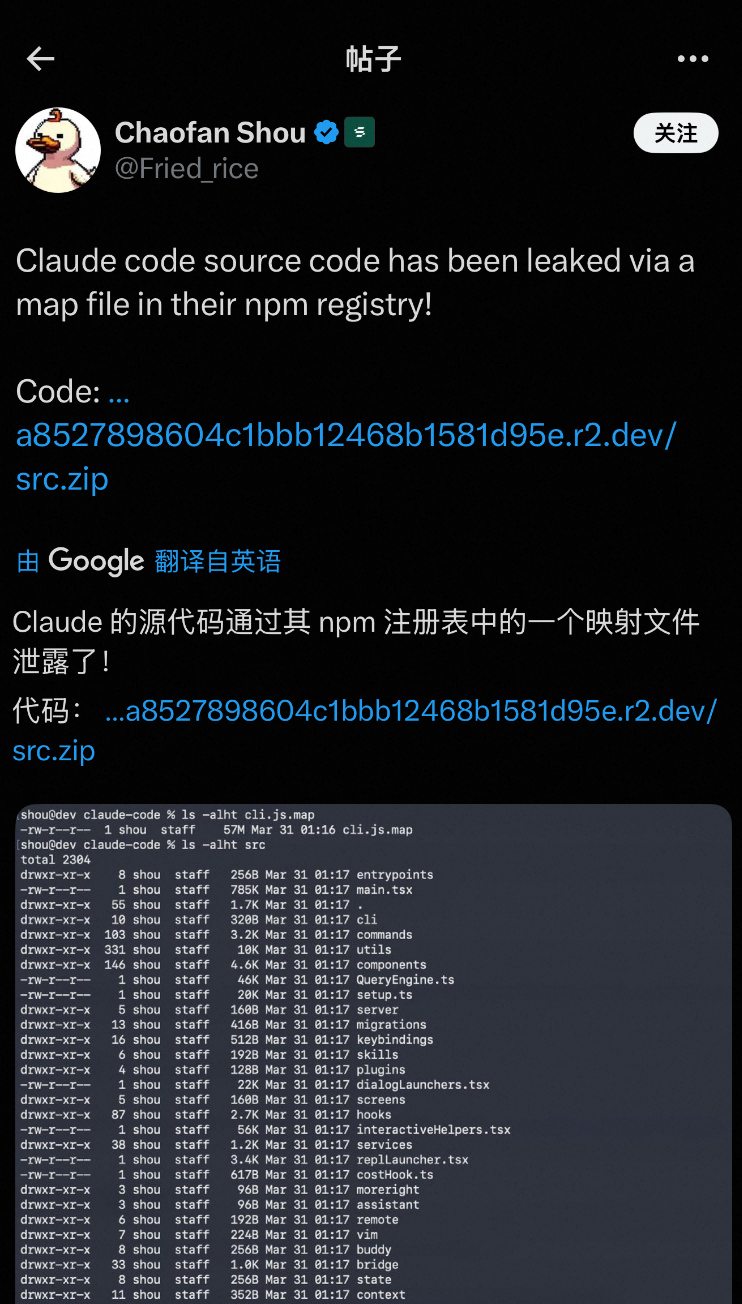 “The source code of Claude Code was leaked through the map files in their npm repository!”